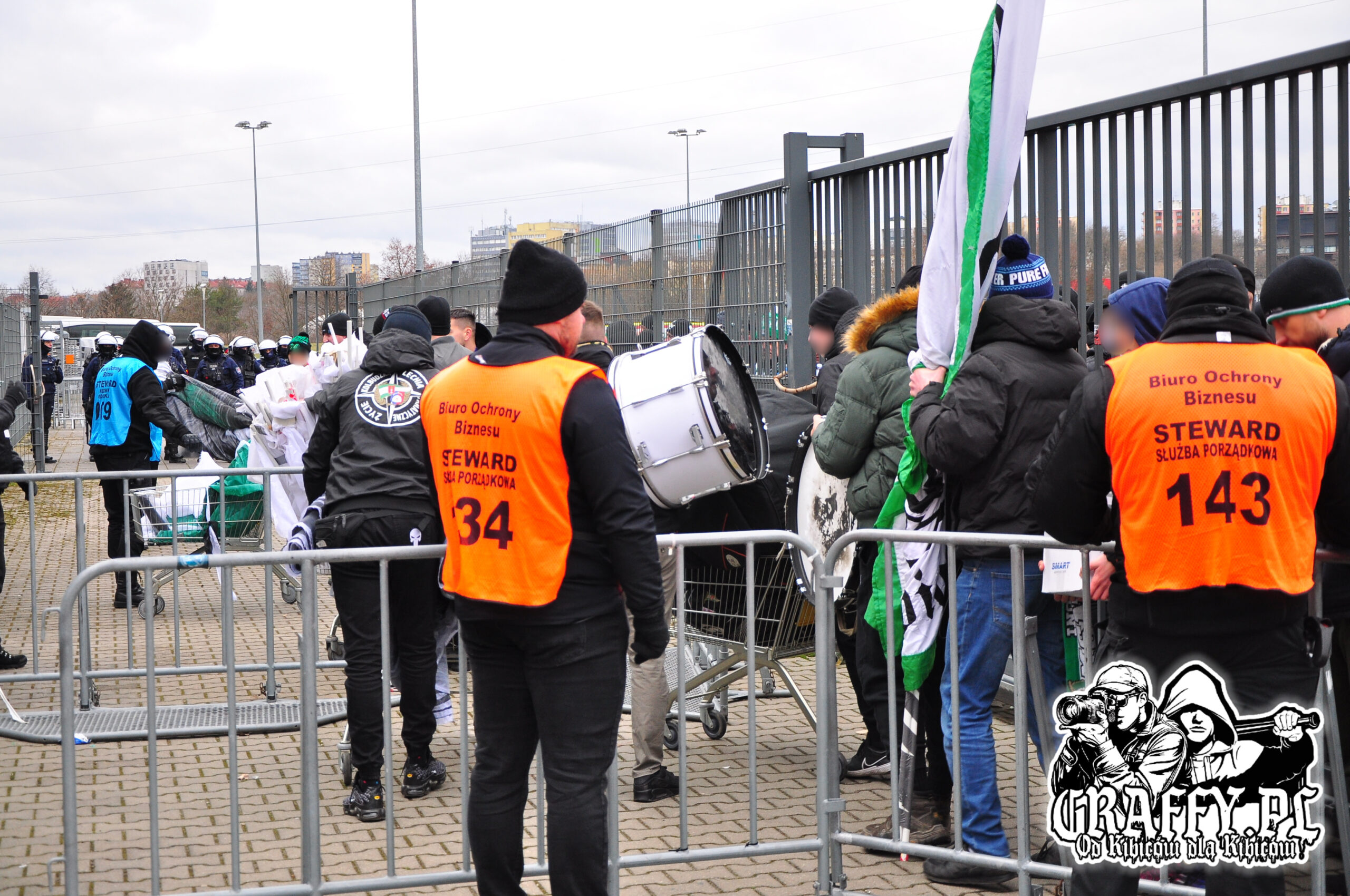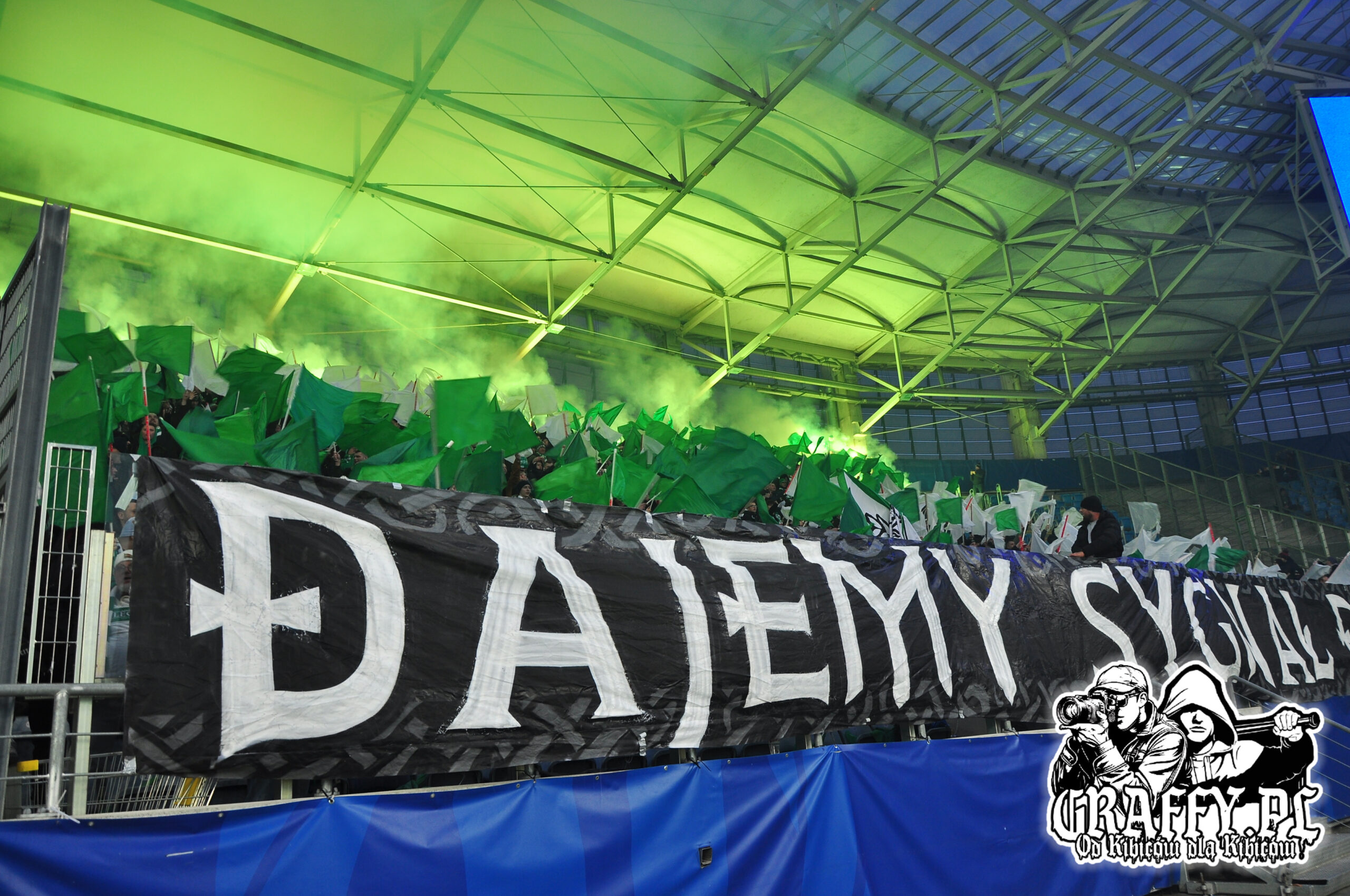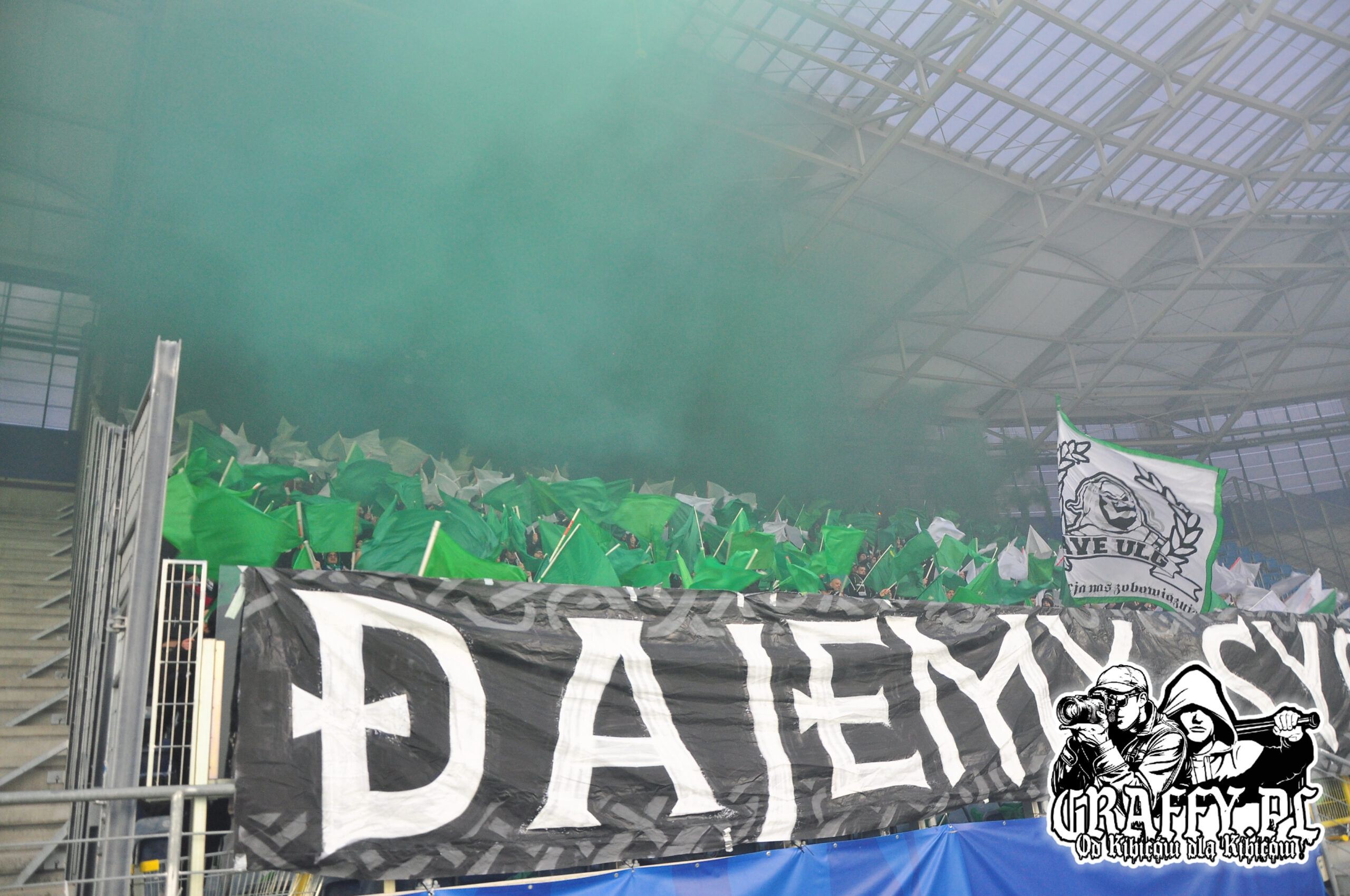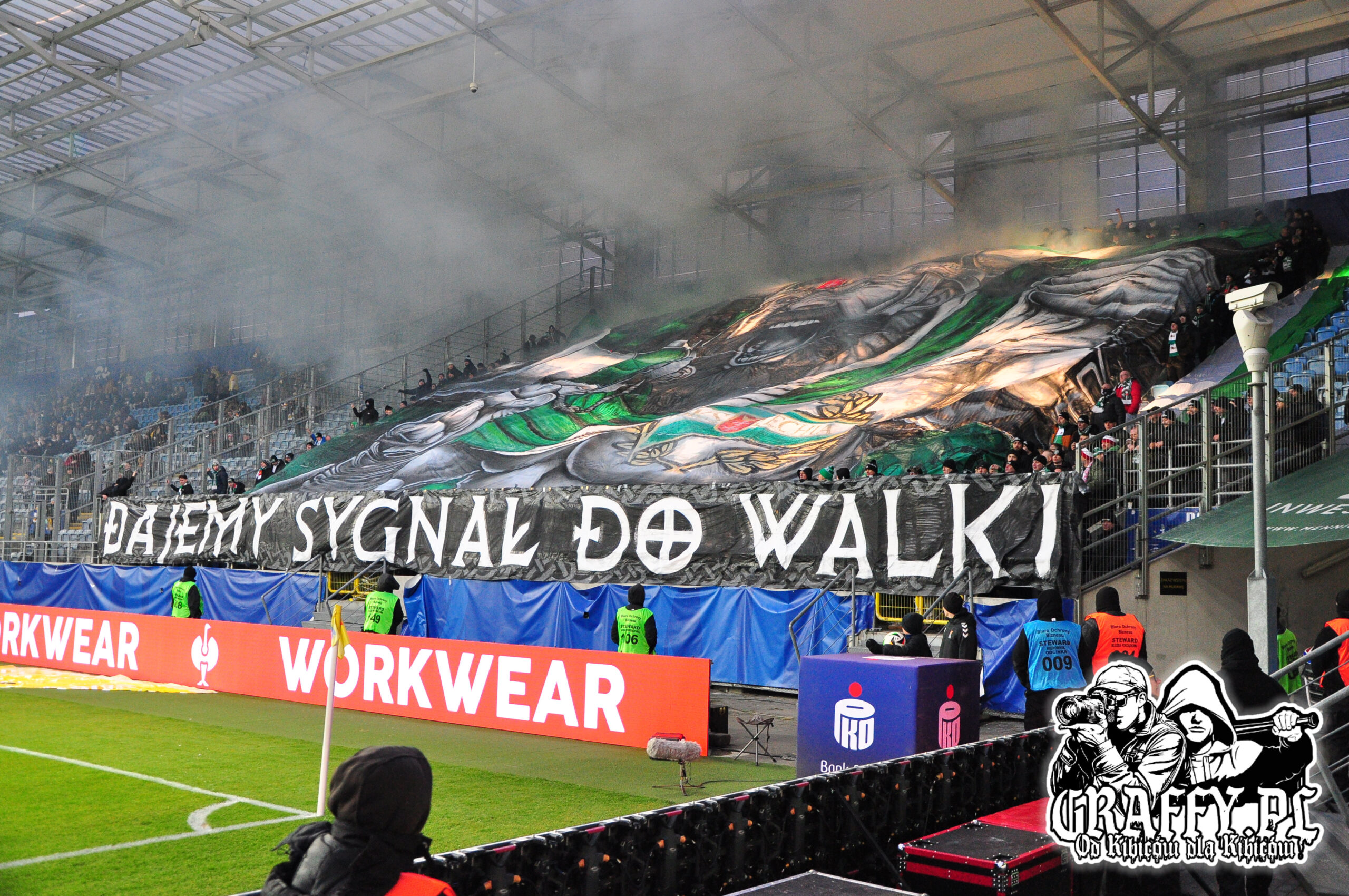 Kibice Lechii Gdańsk byli obecni na meczu w liczbie 760, w tym Gryf Słupsk – 25 osób, Czarnych Słupsk – 11, Śląsk Wrocław – 2, Stomil Olsztyn – 2 oraz GKM Grudziądz – 6. W czasie meczu zaprezentowali kilka ciekawych opraw, których zdjęcia znajdziecie poniżej.