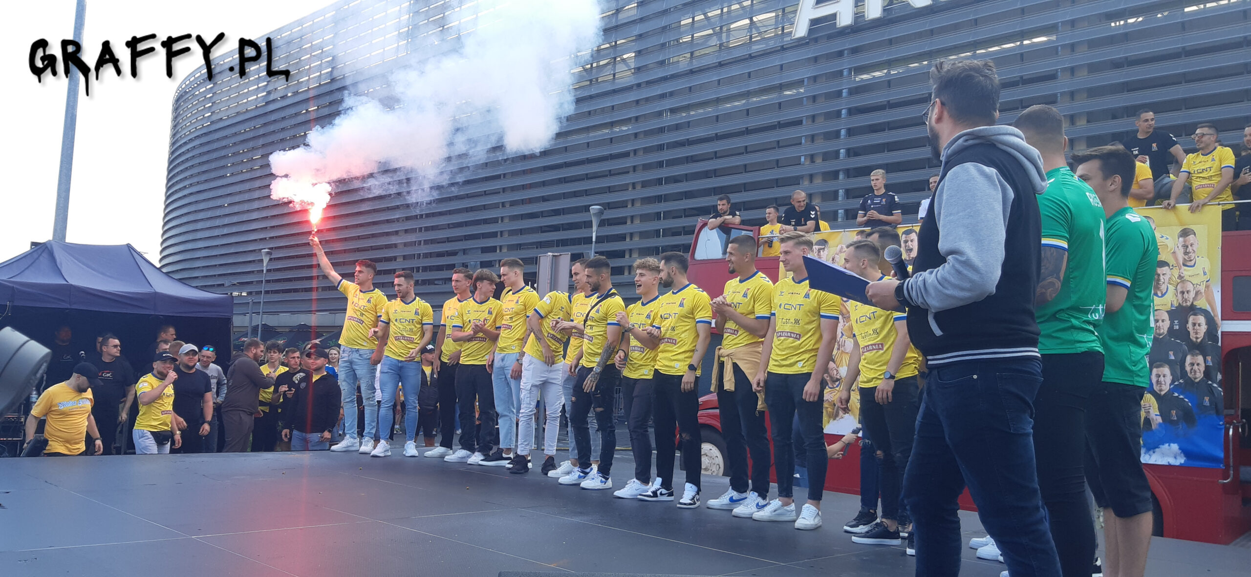 Świętowanie miało miejsce pod Areną Lublin, gdzie zgromadzili się kibice, piłkarze oraz sztab szkoleniowy zespołu. To wydarzenie przyciągnęło tłumy entuzjastów, którzy wspólnie celebrowali ten historyczny moment dla klubu.