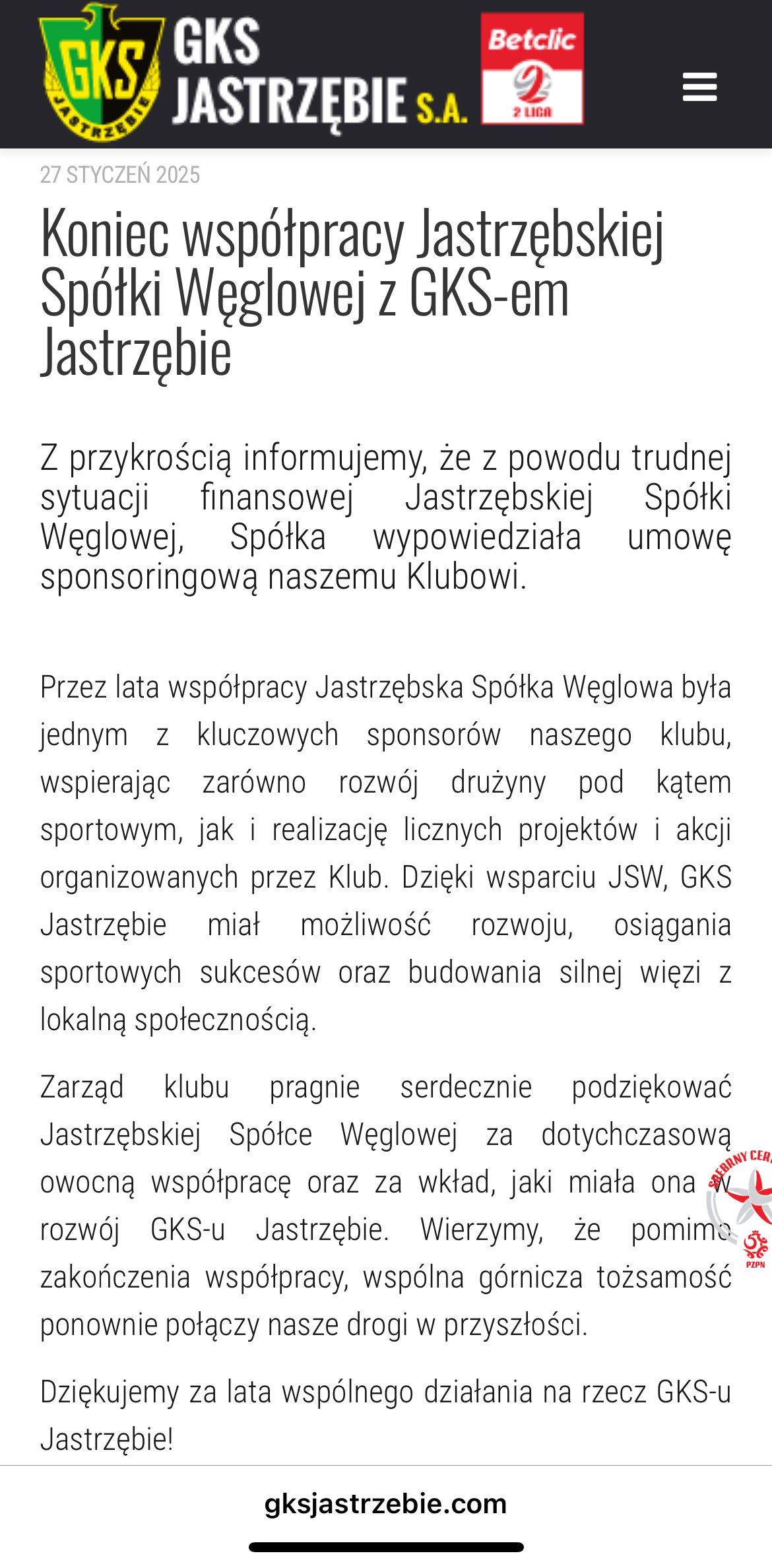 Jednym z największych ciosów dla GKS-u była decyzja Jastrzębskiej Spółki Węglowej o zakończeniu współpracy. Przez lata JSW była strategicznym sponsorem klubu i to jej wsparcie pozwalało drużynie funkcjonować na poziomie centralnym. Wycofanie się spółki oznaczało ogromną dziurę w budżecie, której nie dało się w prosty sposób zasypać. Co ważne, JSW nie odcięła się całkowicie od sportu w mieście – nadal wspiera sekcje siatkarską i hokejową, ale piłka nożna została pominięta. To wywołało spore rozczarowanie wśród kibiców, którzy czują, że właśnie ich dyscyplina została potraktowana najgorzej.