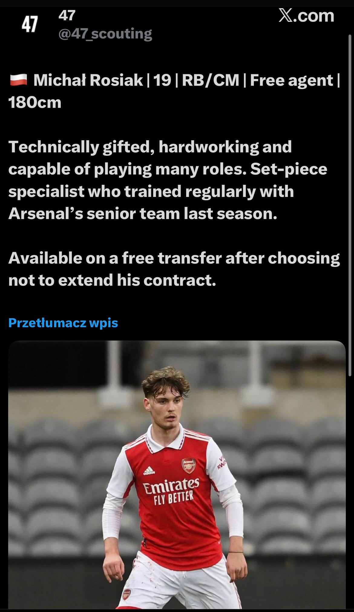 „Jest uzdolniony technicznie, pracowity i zdolny do gry na kilku pozycjach. Jest specjalistą od stałych fragmentów gry” – takie słowa możemy znaleźć na profilu @47_scouting na platformie X.